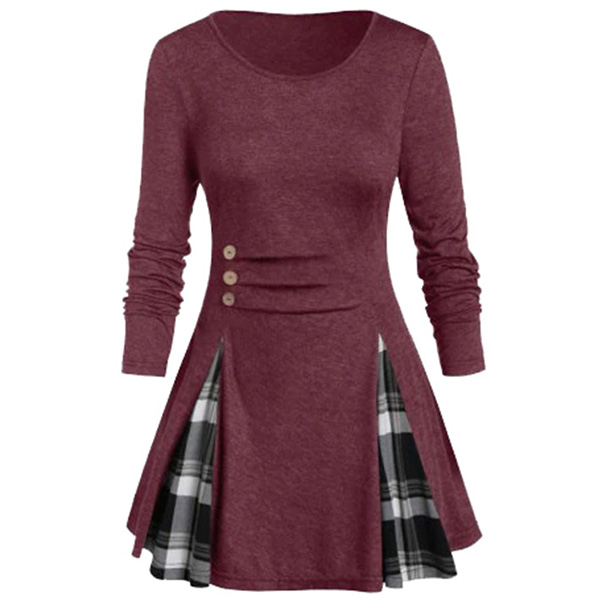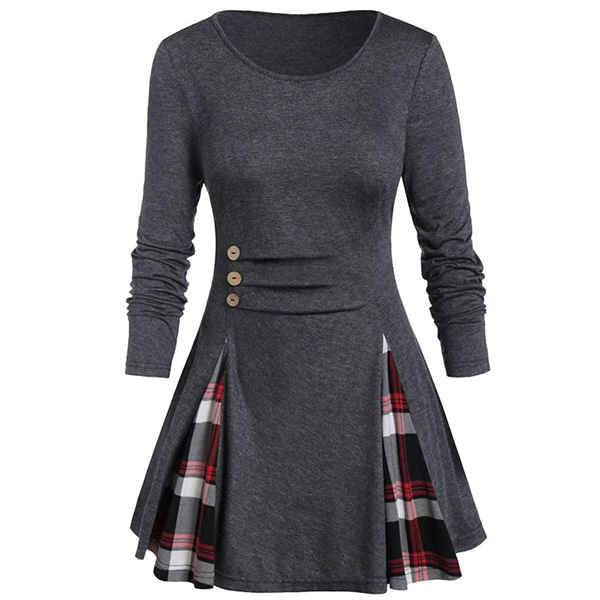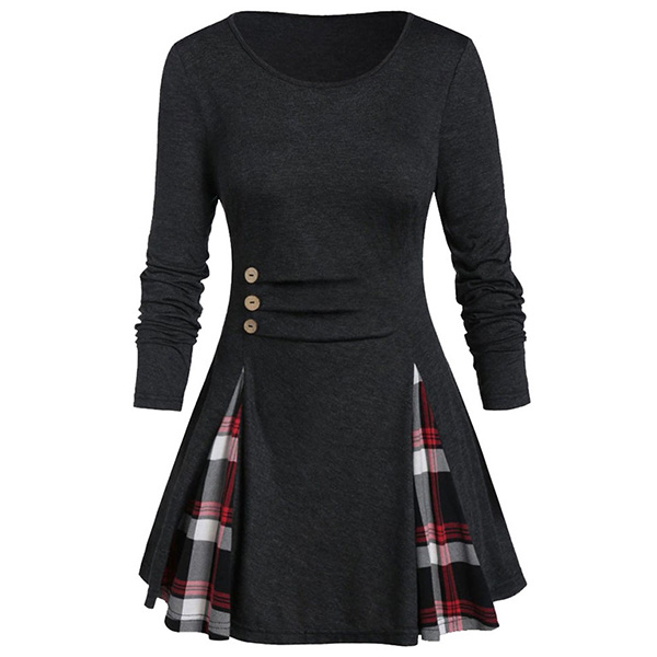 When you have a mid-afternoon tea or night dating,you can trust in this dress to give you a beautiful look. Finished with long sleeve,round neck and high waist design,the plaid spliced hem design will further enhance its charm. Just need to match with your favourite shoes,then you can look charming enough!