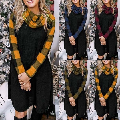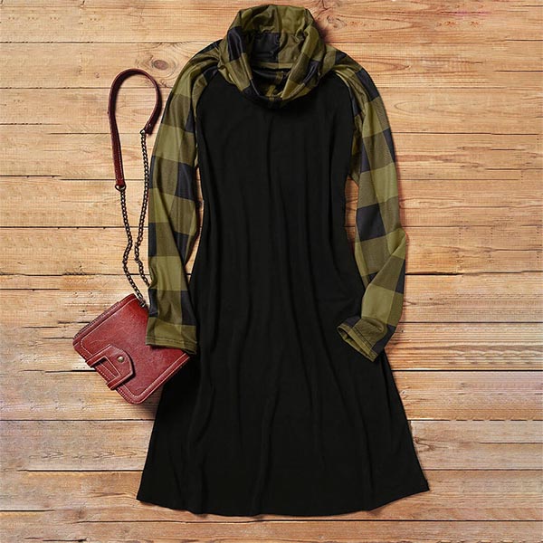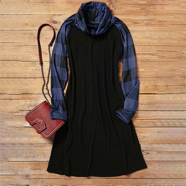 It is a good chance to boost your daily charm with the help of this dress. The plaid spliced and cowl neck design are the highlights,which make this piece look so attractive. You can dress it up with your sexy heels or dress down with your casual flat shoes. Anyway,it can give you a fashionable look.