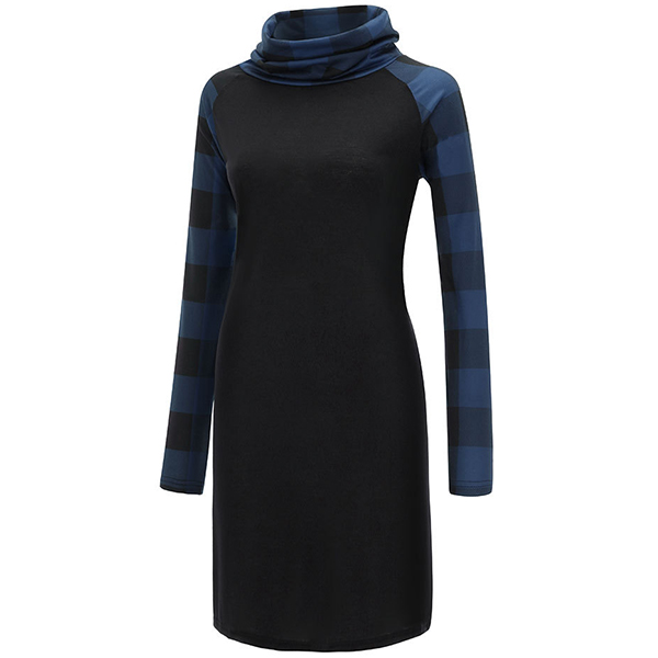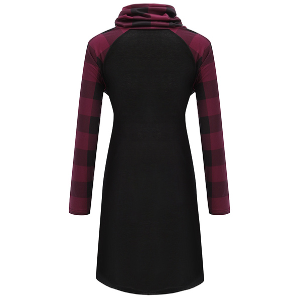 Fashion Plaid Spliced Long Sleeve Cowl Neck Dress