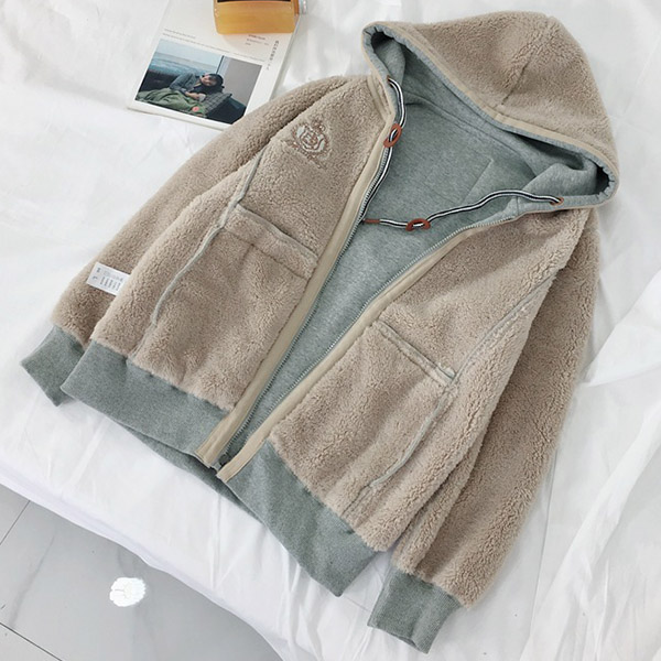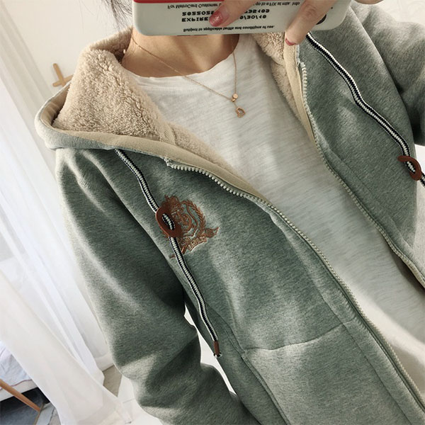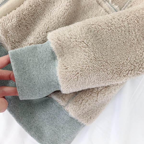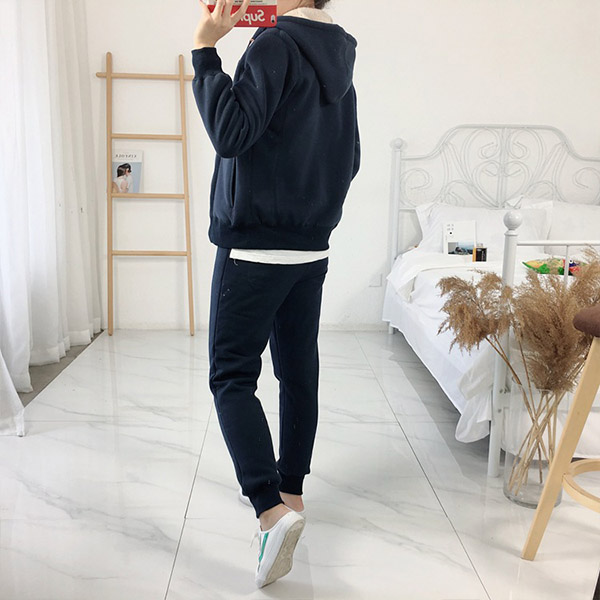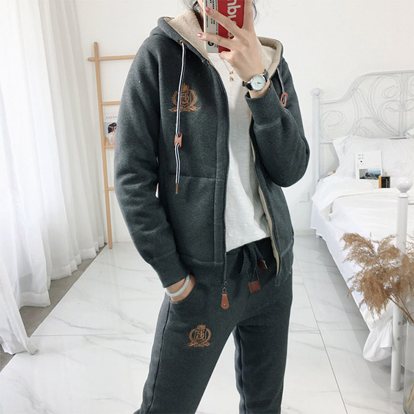 Fashion Plush Lining Hooded Sweatshirt Coat Pants Sports Suit