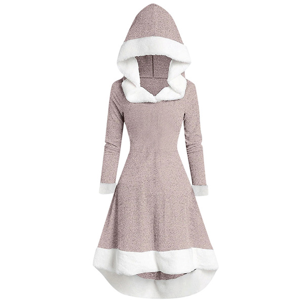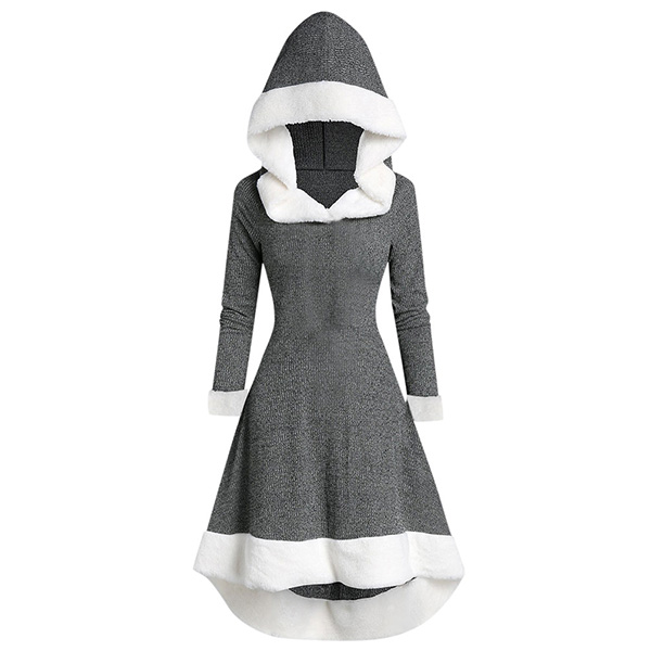 For your daily out on these cold days,you can make your eyes focused on this dress to achieve for an effortless charming look. Finished with long sleeve and hooded silhouette,the plush spliced details and high-low hem design will make this piece look more attractive. You can exude your style and personality in this dress.