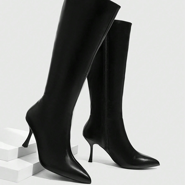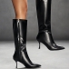 Damstövlar, högklackade i konstläder med spetsig tå och blixtlås – elegant design