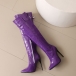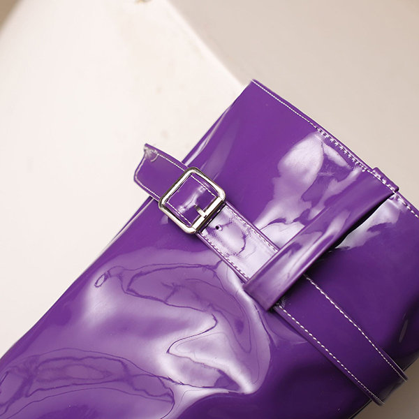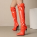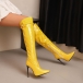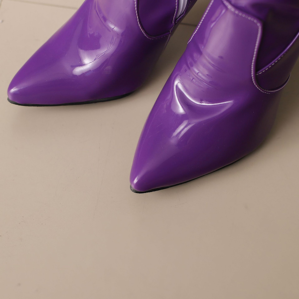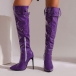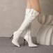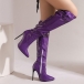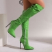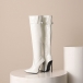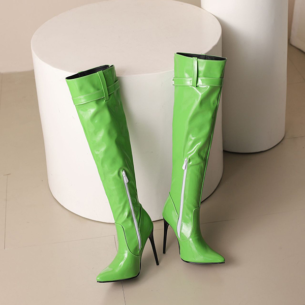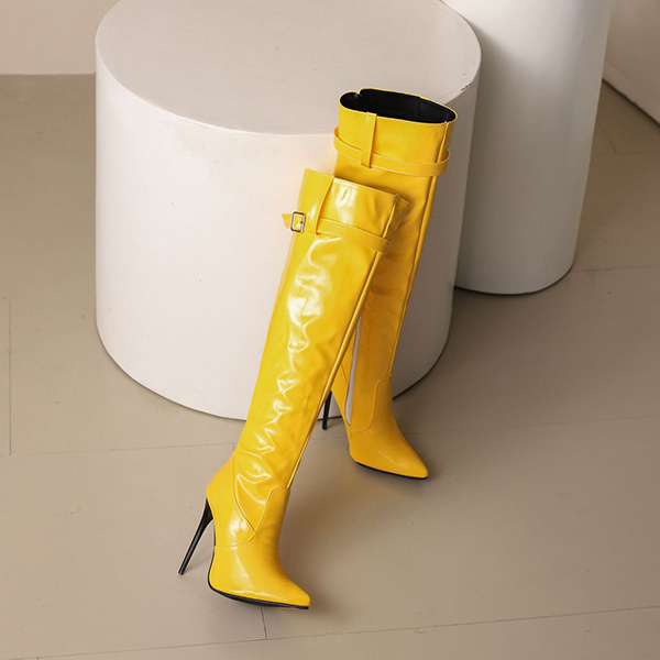 Högklackade knähöga stövlar med spetsig tå, dragkedja och spänne i PU-konstläder