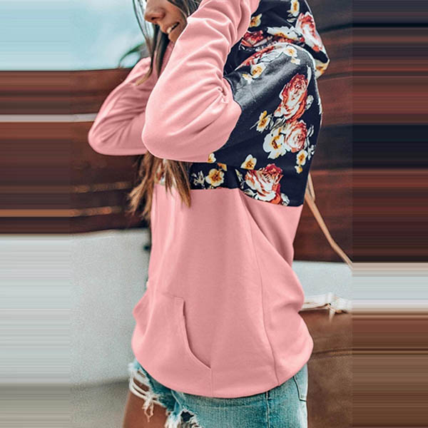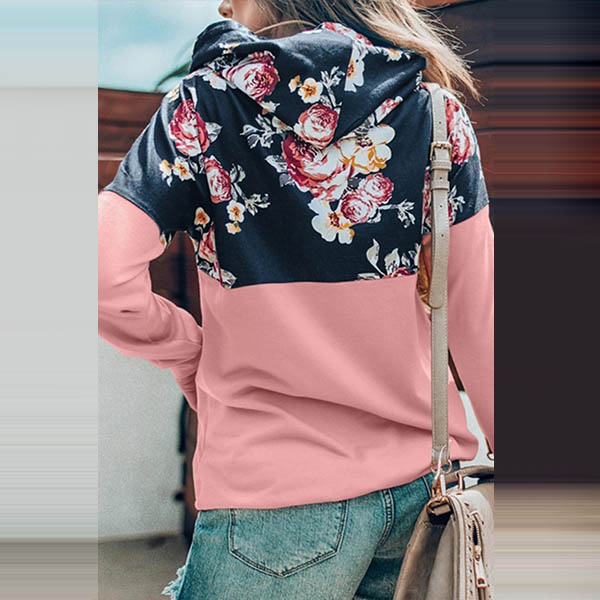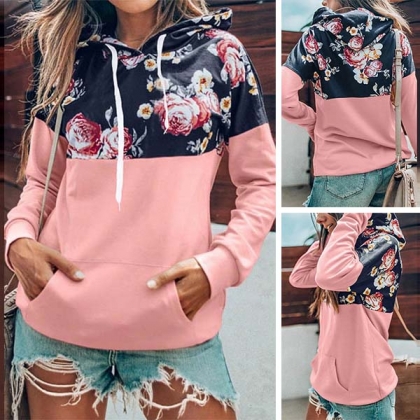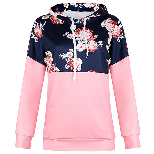 For a simple,casual and relaxed autumn look,you can have a try this sweatshirt. The sweet pink tone and printed spliced details make this piece look more eye-catching. Finished with long sleeve,hooded silhouette and front kangaroo pocket design,this piece can give you a comfortable day with its soft and breathable fabric.
