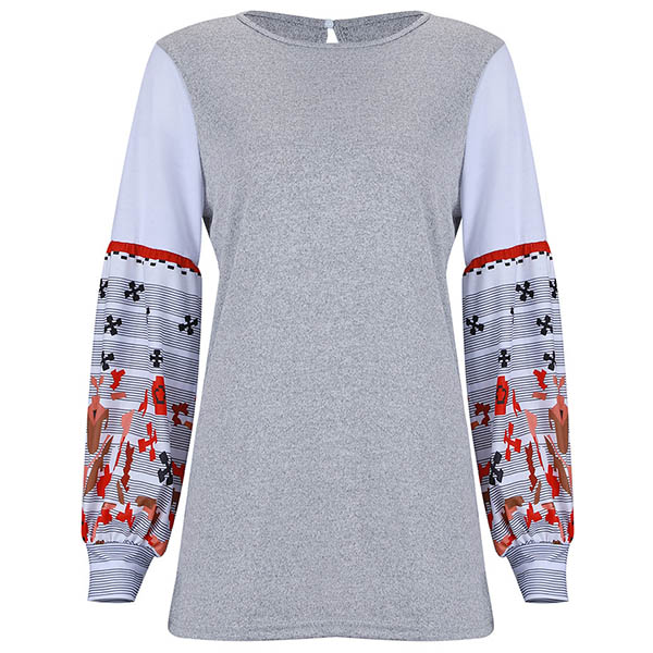 Attracted by this chic and stylish sweatshirt? Then introduce it to your wardrobe ensemble. The printed spliced details at the sleeve part will enrich the design style,while the contrast color design will further boost its charm. This piece is just the thing you need on these casual weekends.