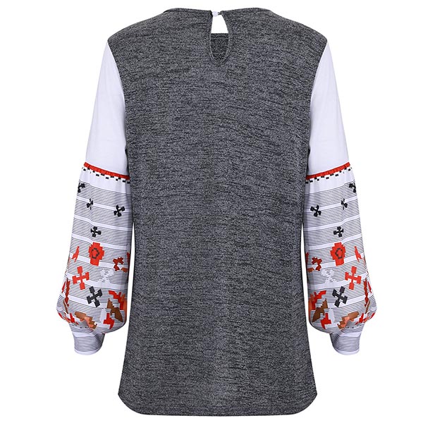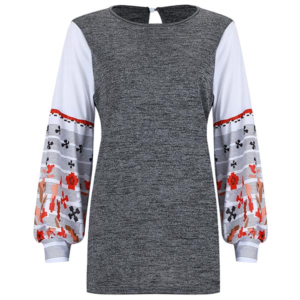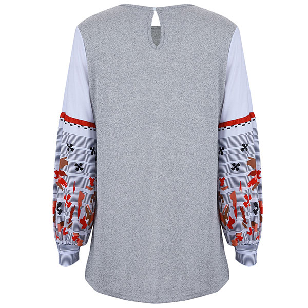 Fashion Printed Spliced Long Sleeve Round Neck Contrast Color Sweatshirt