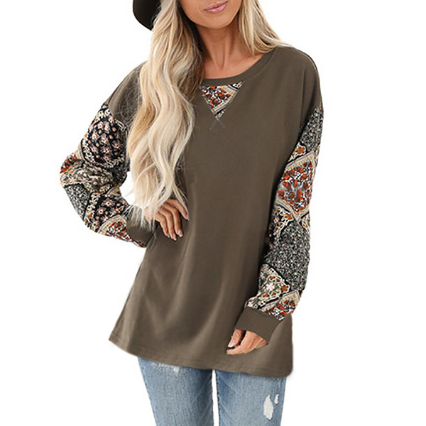 Fashion Printed Spliced Long Sleeve Round Neck T-shirt