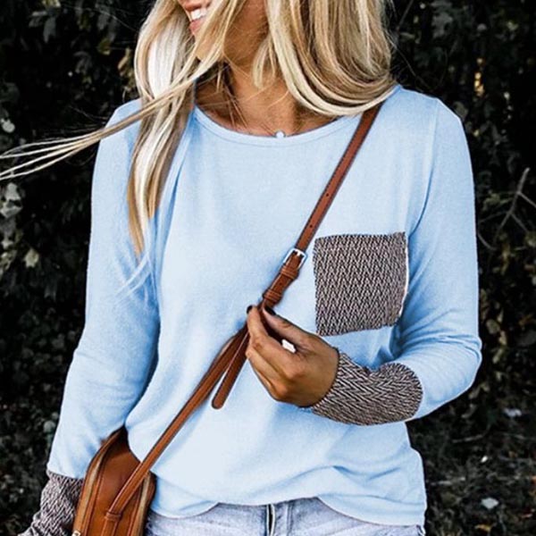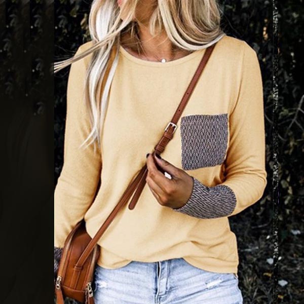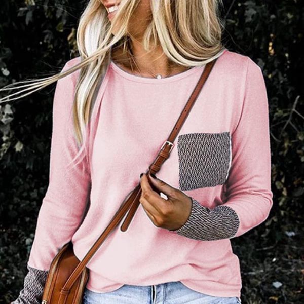 Update your casual wardrobe ensemble with this t-shirt! Crafted from soft and breathable fabric,with long sleeve,round neck and a chest pocket,this t-shirt knows how to give you a comfortable day. Moreover,the printed spliced details will further enhance its charm. Your perfect choice on those casual days.