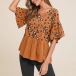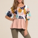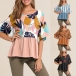 Fashion Printed Spliced Short Sleeve Round Neck Loose Top