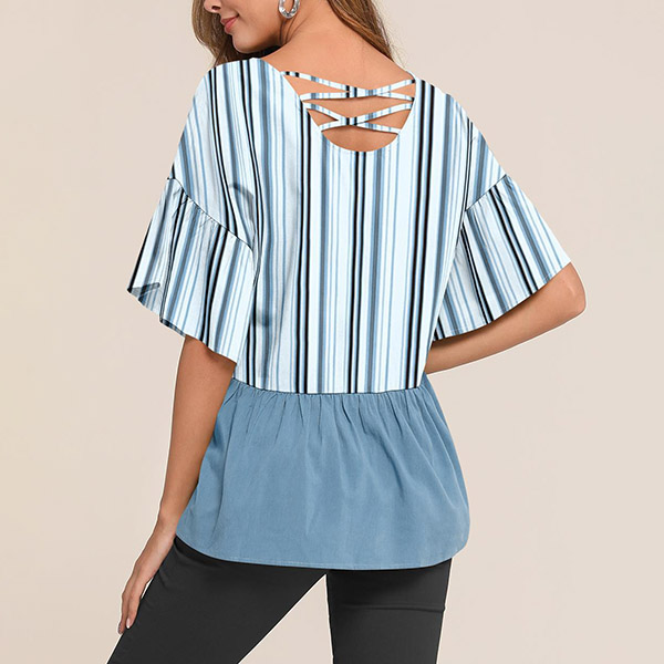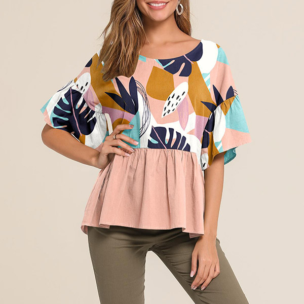 This top is crafted from soft and breathable fabric,with short sleeve,round neck and a loose silhouette,which can offer you a comfortable day. Moreover,the printed spliced details will further enhance its charm. You can simply matching with a tight pants to have a fashionable look.