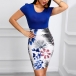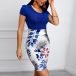 Fashion Printed Spliced Short Sleeve Round Neck Slim Fit Dress