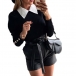 When the days get a little cold,you can just slip into this knit top to stay warm and stylish. Mock two-piece style,the puff sleeve and POLO collar design make this piece look so chic and attractive. Like this style? Then invite it to your wardrobe.
