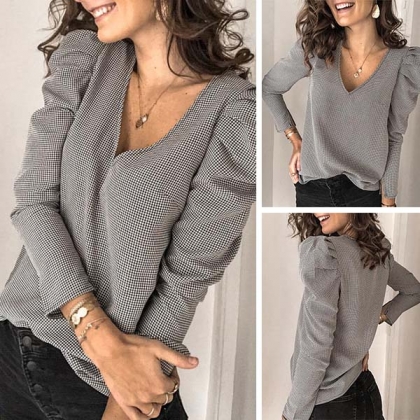 As we all know,plaid element will never be out of fashion. So why not catch up with this trend with this plaid top? The puff sleeve and v-neck design can help boost your femininity. So why not have a try it to give your style an update?