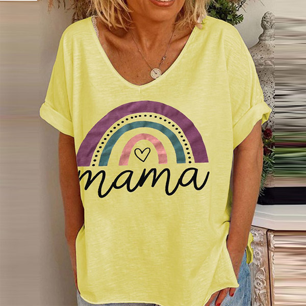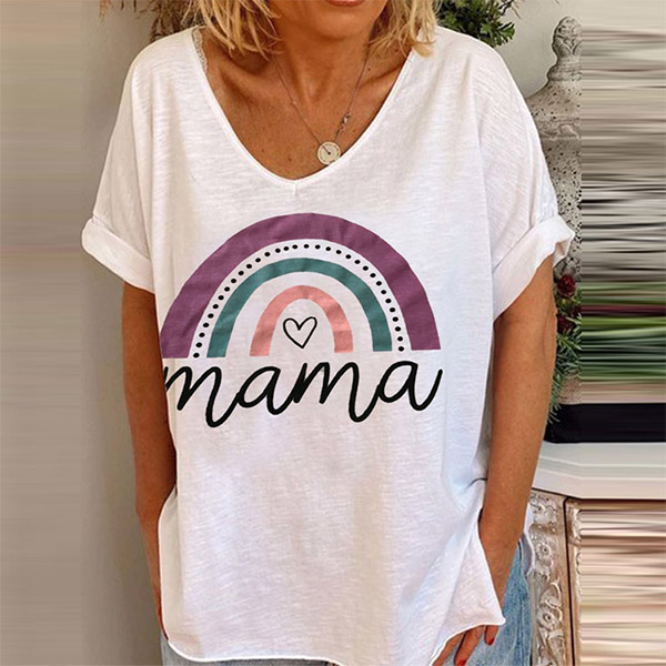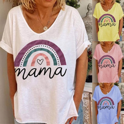 Your casual days call for such a simple,cozy and relaxed t-shirt. Crafted from soft and breathable fabric,with short sleeve,v-neck and a loose silhouette,this piece can ensure you a comfortable day,while the rainbow printed pattern design will add some extra charm. Perfect fit for matching with different style bottoms.