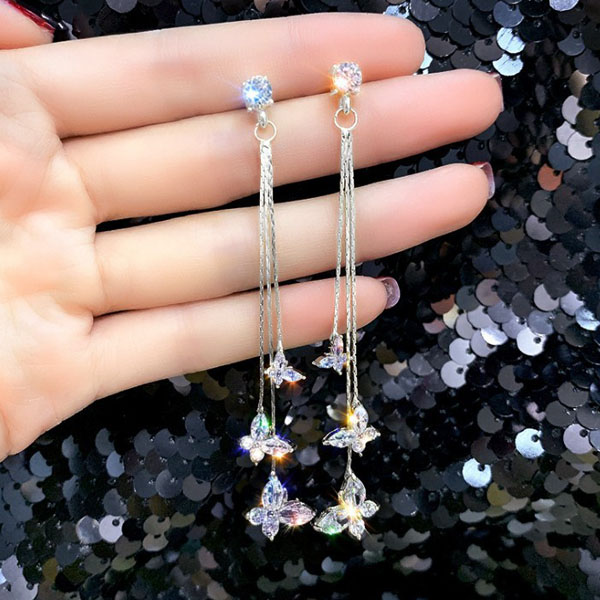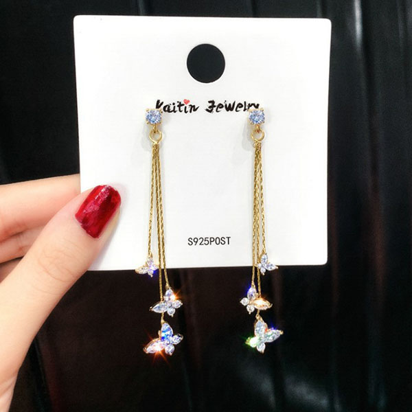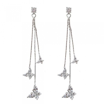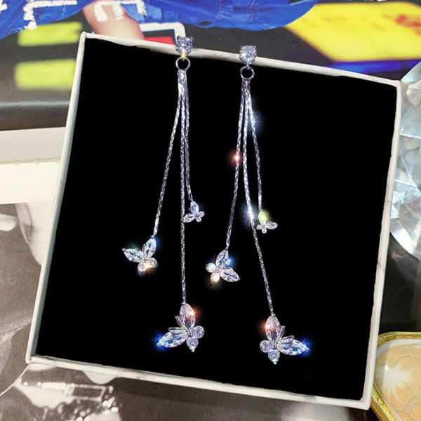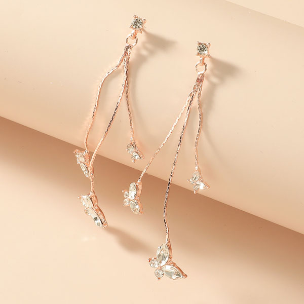 Fashion Rhinestone Butterfly Pendant Tassel Earrings