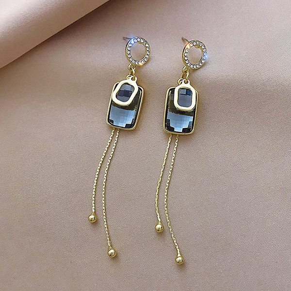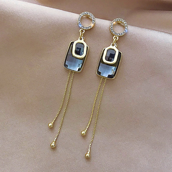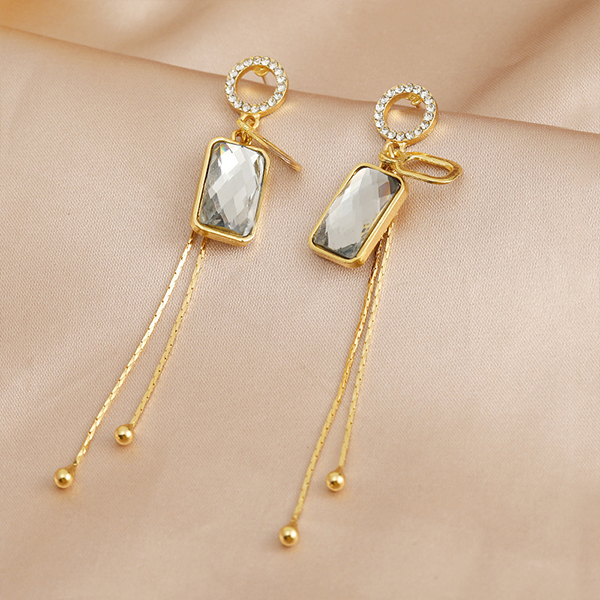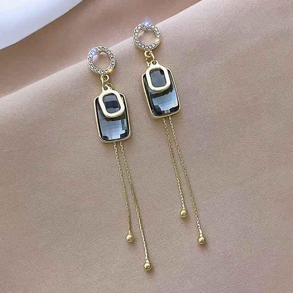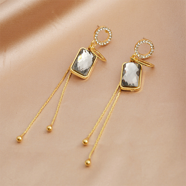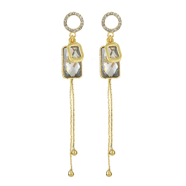 Trendiga örhängen med strassdetalj, rektangelformade hängen och tofs