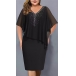 Fashion Rhinestone Ruffled V-neck Short Sleeve Bodycon Dress