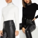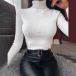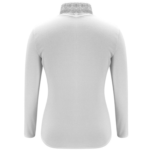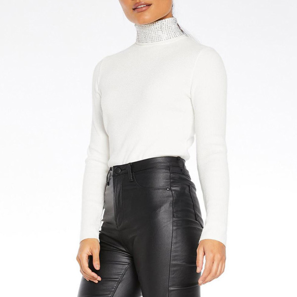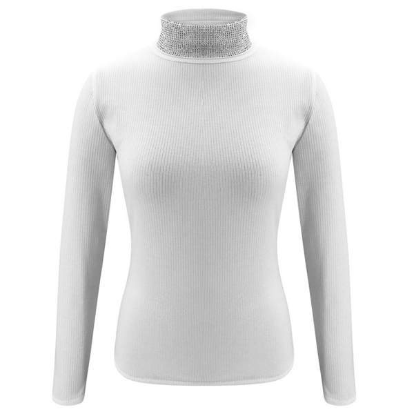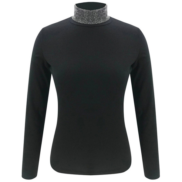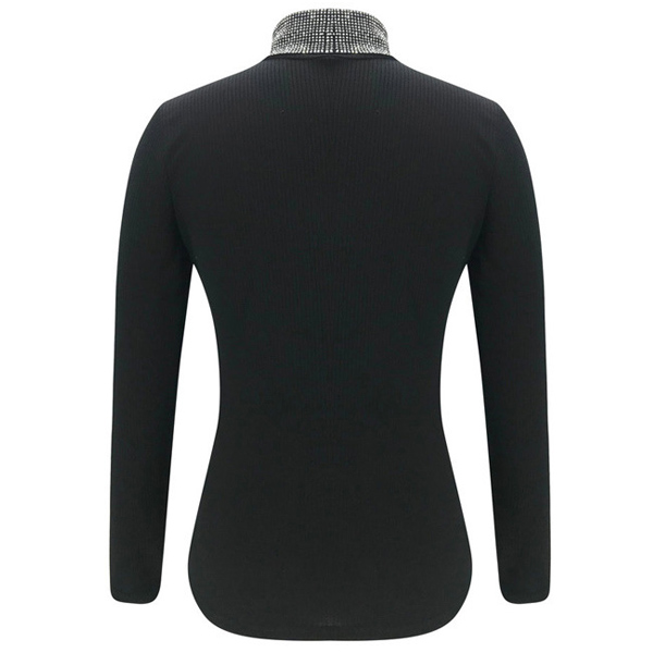 Fashion Rhinestone Spliced Turtleneck Slim Fit Top