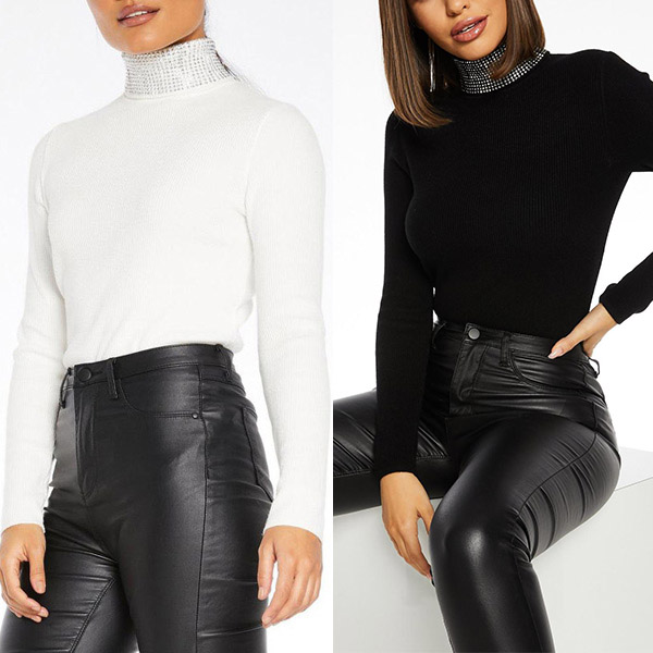 When the days get cold,this cozy,stylish and all-match top would be your wardrobe staple. Thanks to the rhinestone spliced details,this piece can give you some extra charm. Not only can keep you warm,but also can offer you different matching styles,this piece is worth for your attention.
