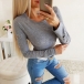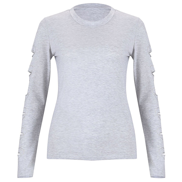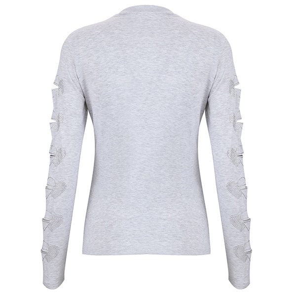 Fashion Ripped Long Sleeve Round Neck Heart Beaded T-shirt
