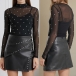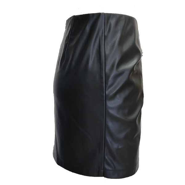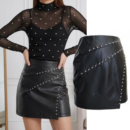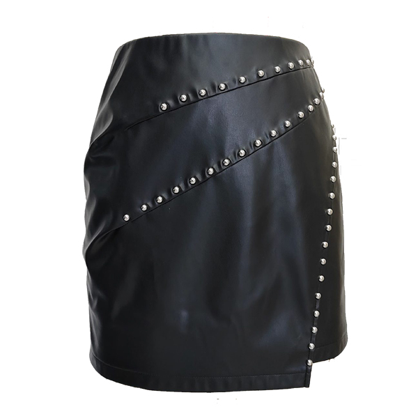 Kjol i konstläder (PU) med nitar, hög midja och sidoslitsar