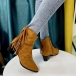 faux plush leather upper material and breathable lining,with round toe,thick heel and tassel design.