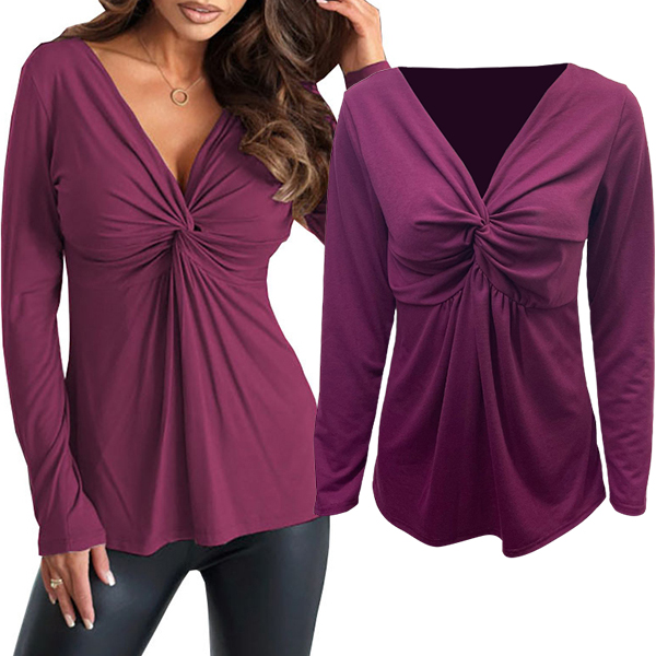 Den här skjortan har en smickrande V-ringning med rynkade detaljer som ger textur och intresse, samt långa ärmar för extra täckning och stil. Kombinera den med jeans och sneakers för en avslappnad outfit.
