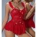 Nattset 2-delar med volang och rosett, push-up och dekorativ fåll – modernt sovset