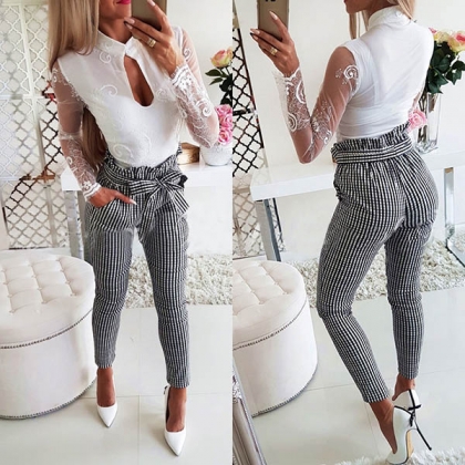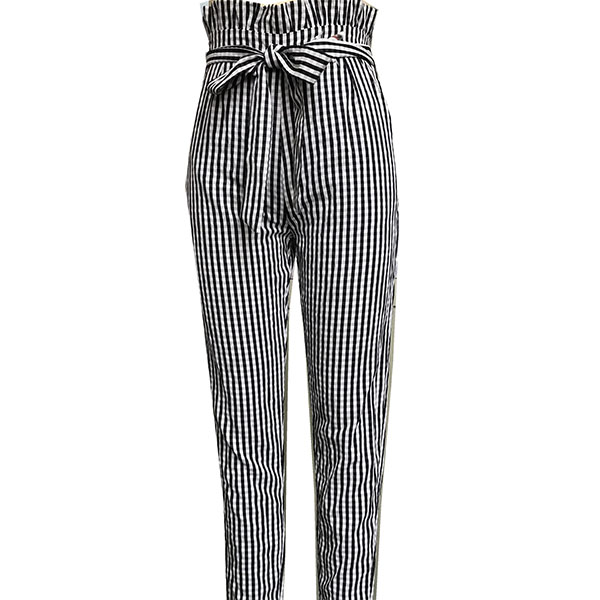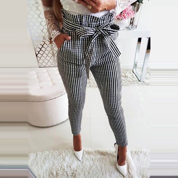 Fashion Ruffle High Waist Slim Fit Plaid Pants