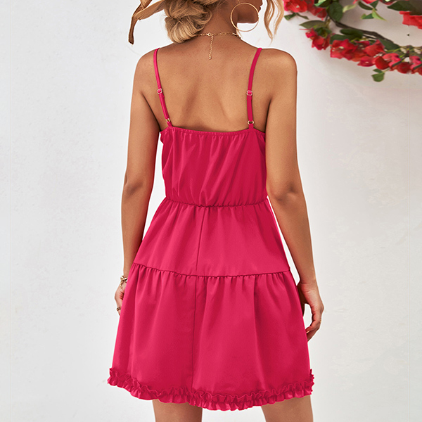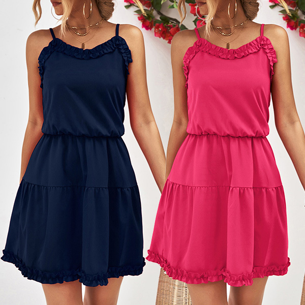 Look at this dress! I like the ruffled details along the neckline and hemline! The flowy fabric and adjustable straps add a touch of femininity and elegance to your look.