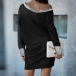 Fashion Sequin Spliced Dolman Sleeve Oblique Shoulder Dress
