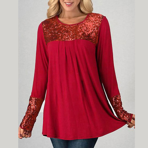 Compared with other t-shirts,this one not only can give you the comfy,but also can bring your more style,that's why we love it! Solid color style,the sequin spliced details make this piece look so attractive. Finished with long sleeve,round neck and a loose silhouette,this dress is perfect fit for your casual days.