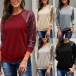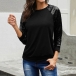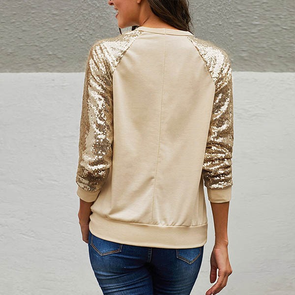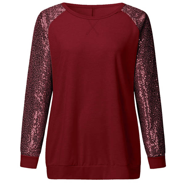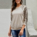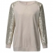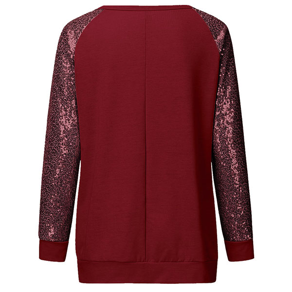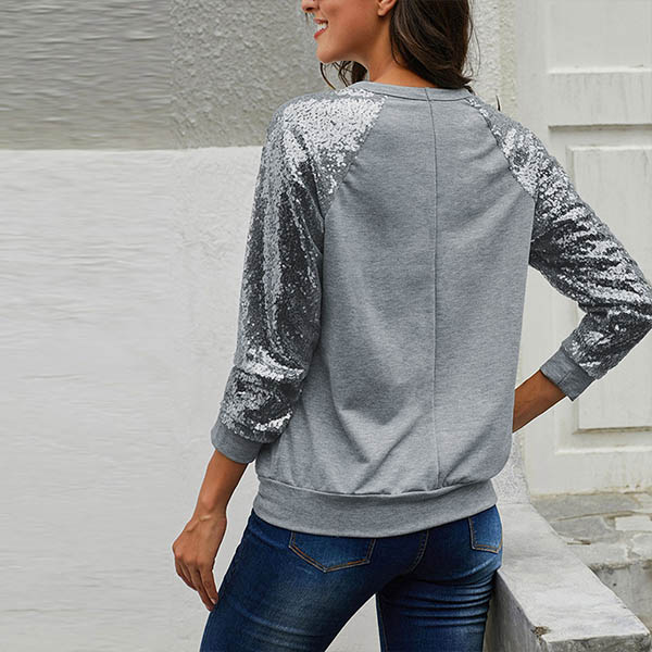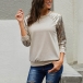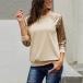 Fashion Sequin Spliced Long Sleeve Round Neck T-shirt