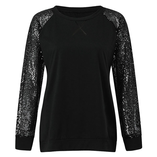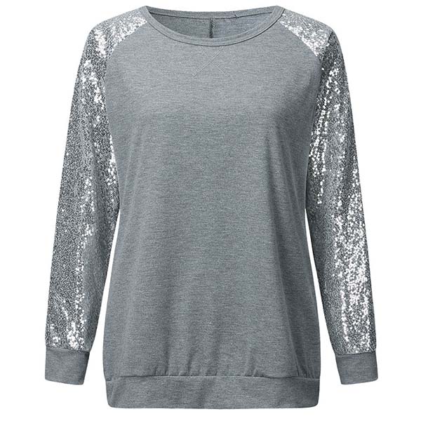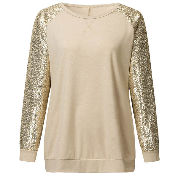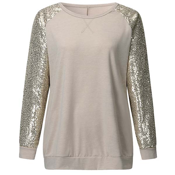 Your casual days call for such a relaxed piece! Crafted from soft and breathable fabric,with long sleeve and round neck design,this piece knows how to give you a comfortable day. In addition,the sequin spliced details will make this piece look more attractive. Simply matching with a jeans to have a laid-back and fashionable look!