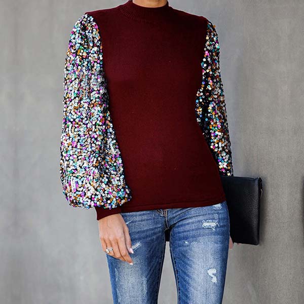 Trust me,you can easily win more eyes when you wear this wonderful top. What makes this piece look so attractive? It owes to the sequin spliced lantern sleeve design. Meanwhile,its soft and breathable fabric can ensure you a comfortable day. If you wanna boost your charm,you can have a try this piece.