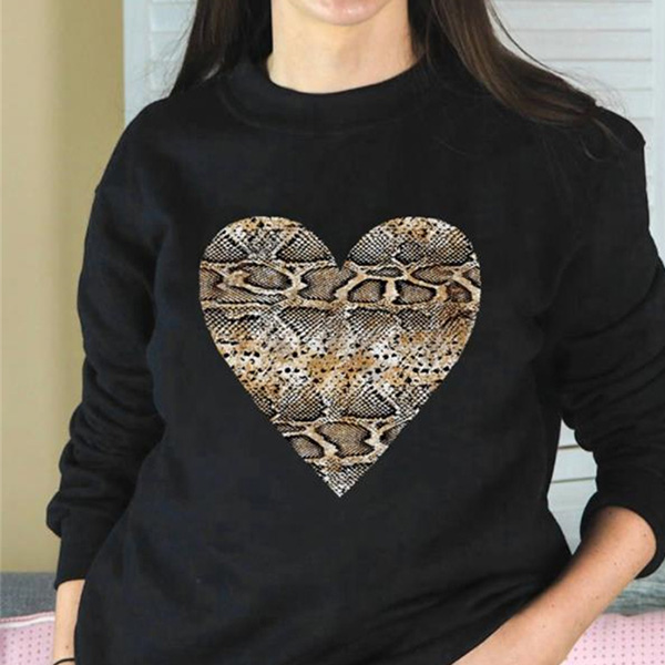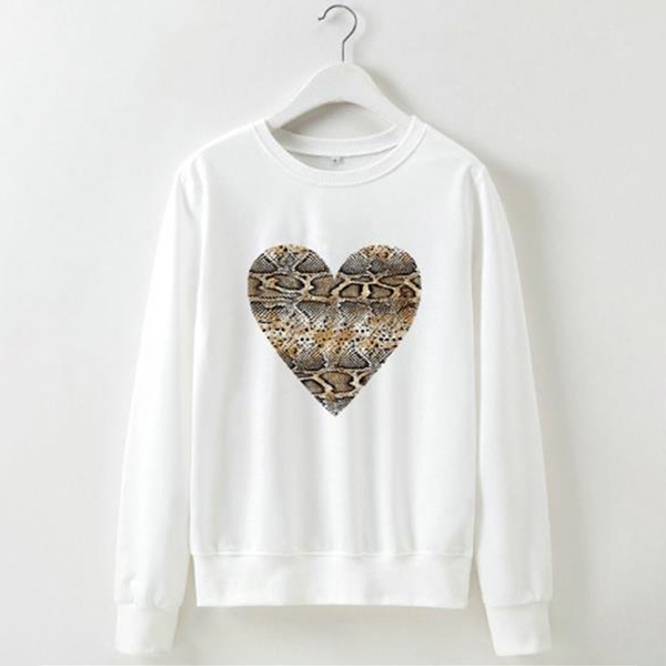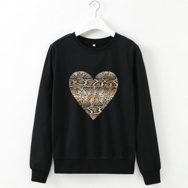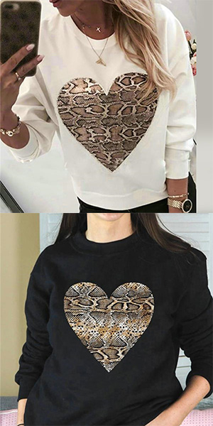 As for a simple,casual and relaxed style,you can just slip into this sweatshirt. The soft and breathable fabric can give you a comfortable day,while the serpentine heart printed pattern design will make this piece look more eye-catching and attractive. All-match design allows to be matched with different style bottoms.