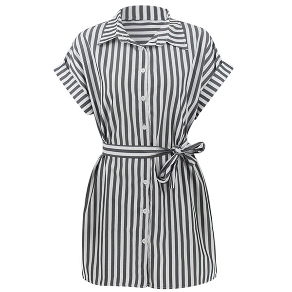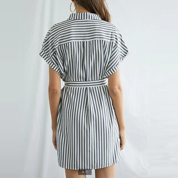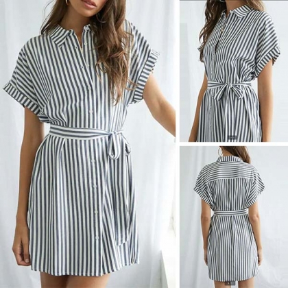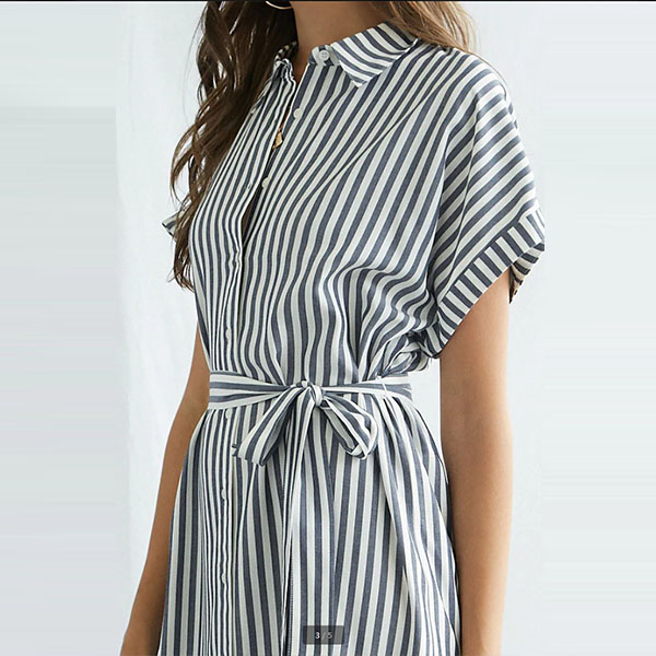 Your wardrobe will feel new and refreshing with this shirt dress! Striped element design makes it look stylish and popular,while the short sleeve,POLO collar and single-breasted design maintain the classic design style. For your busy workdays,this delicate yet stylish shirt dress is a perfect solution.