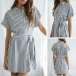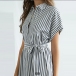 Fashion Short Sleeve POLO Collar Striped Shirt Dress