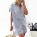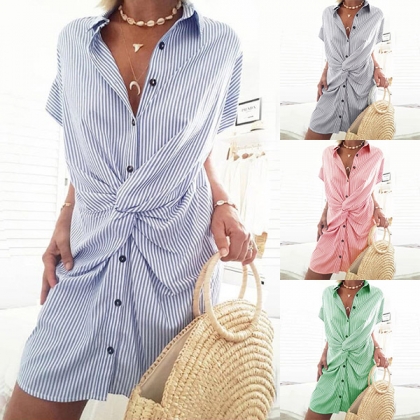 Fashion Short Sleeve POLO Collar Twisted Striped Dress