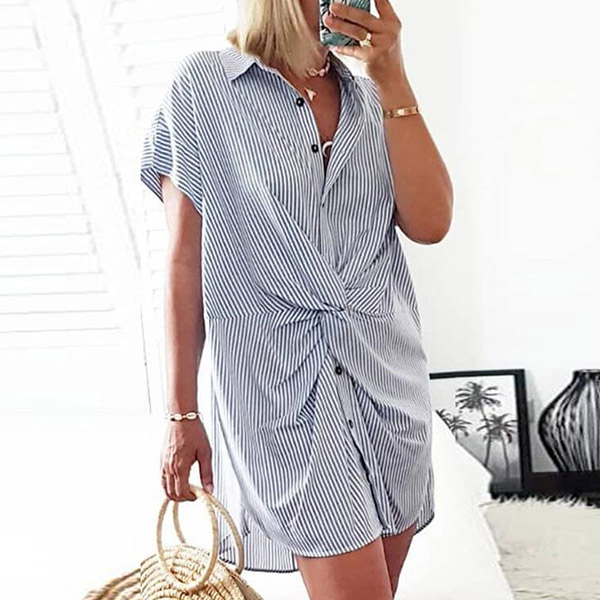 If you're yearning for a piece which can give your style an instant boost,then look no further than this stripe dress. The most attractive design of this piece is the twisted design. No matter for your daytime out or weekend trips,this dress is your good choice to help you gain more eyes.