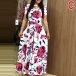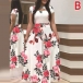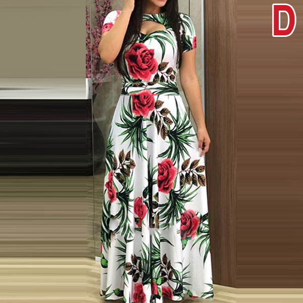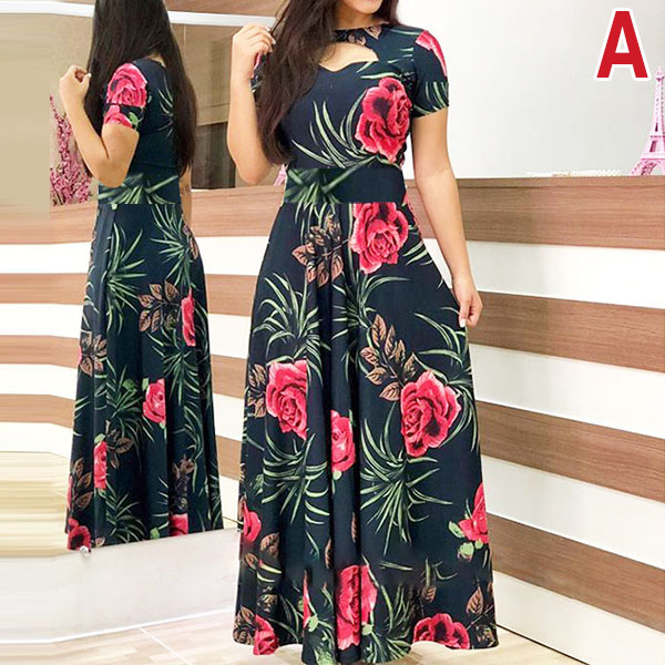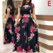 Fashion Short Sleeve Round Neck High Waist Printed Maxi Dress