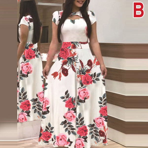 A simple maxi dress with eye-catching printed details can make you look charming and beautiful,take this one for example! Its printed details will help you catch more eyes,while the high waist and maxi length design will showcase your slender figure. From the backyard barbecues to garden parties,this beautiful dress can give you an easy transition.