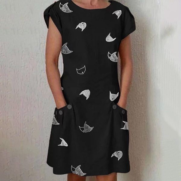 casual and relaxed style. It is finished with short sleeve,round neck and chic printed details,
