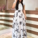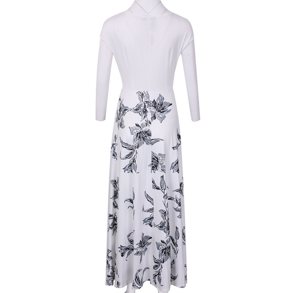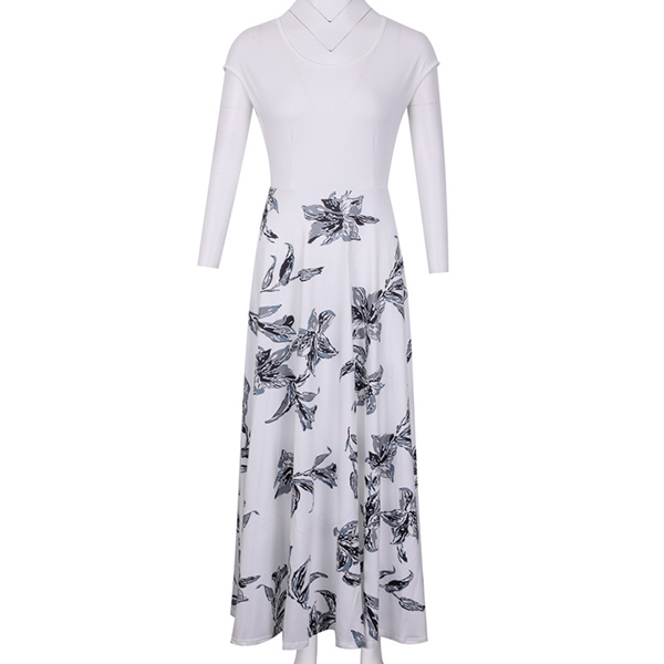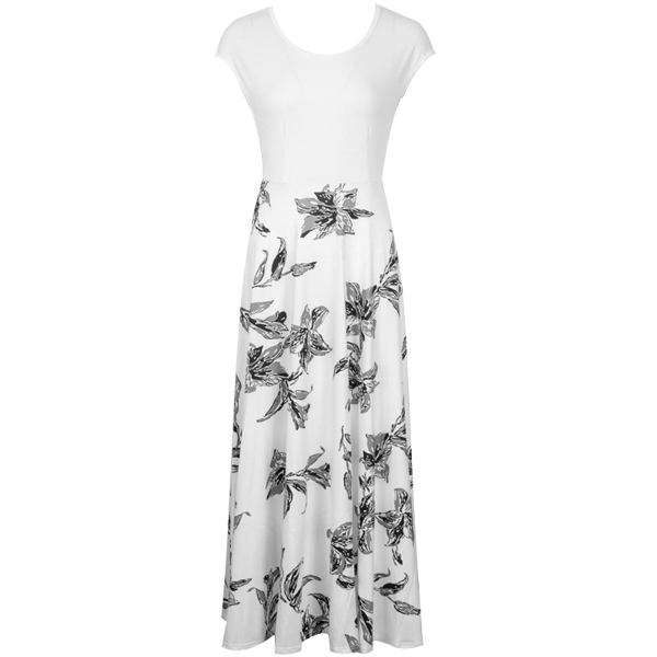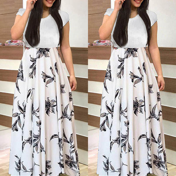 Fashion Short Sleeve Round Neck Printed Spliced Maxi Dress