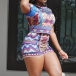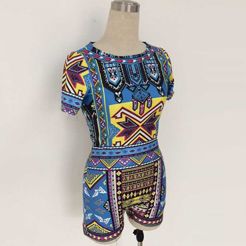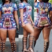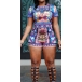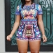 This romper features chic and abstract printed style,with short sleeve,round neck