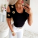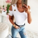 Crafted from soft and breathable fabric,with short sleeve and round neck design,this t-shirt can ensure you a comfortable day. Solid color style,the off-shoulder and key-hole details will add some extra charm. All-match design allows to be matched with different style bottoms.