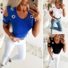 Fashion Short Sleeve Round Neck Solid Color Hollow Out T-shirt