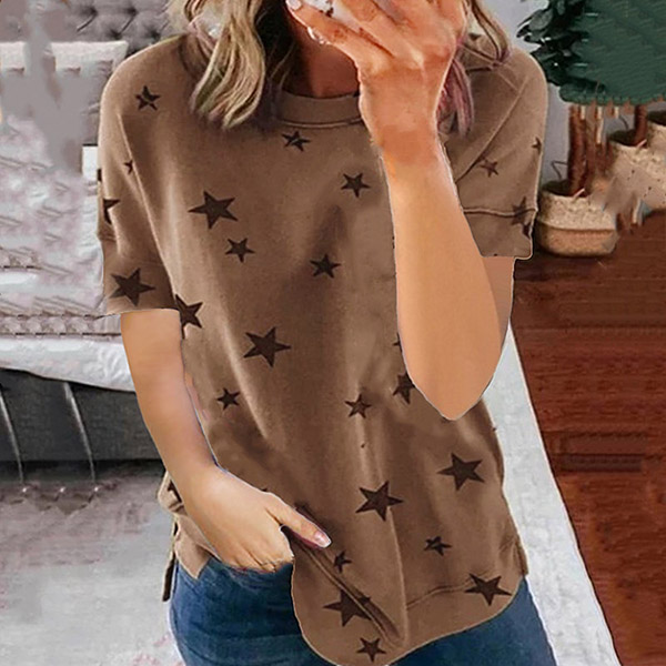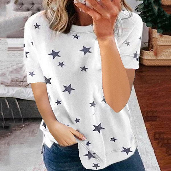 Fashion Short Sleeve Round Neck Star Printed T-shirt