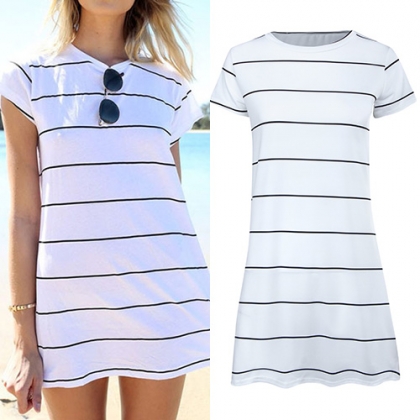 Striped style,with short sleeve,round neck and cozy fabric,this t-shirt dress can keep you