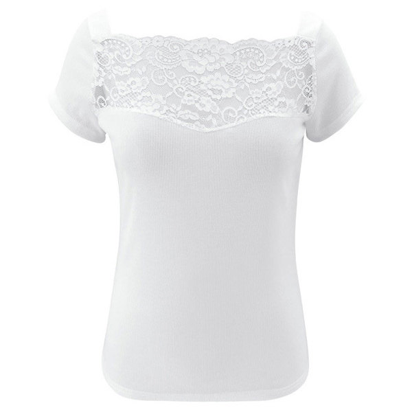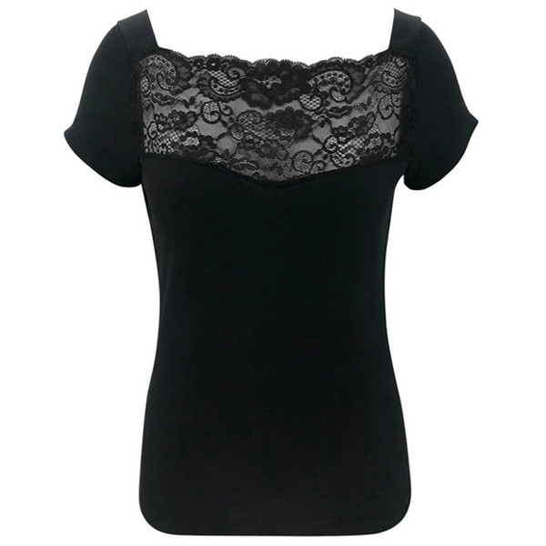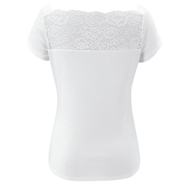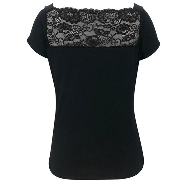 Fashion Short Sleeve Square Collar Lace Spliced T-shirt